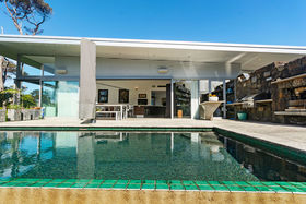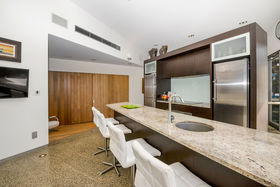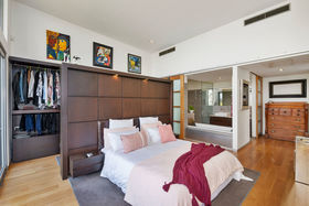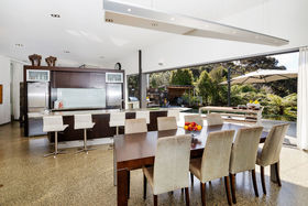 Continuing the integrated theme throughout the home is the use of concrete, granite and generous amounts of glass. The spectacular Butler's Kitchen merges with the outside BBQ area creating multiple options to entertain. A superb up to five metre stud, open plan kitchen and living with an adjacent media room, powder room and the use of sliding doors generates functional and interesting living spaces.