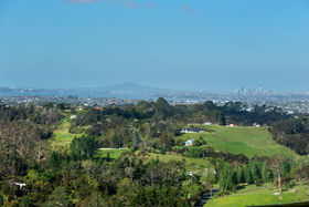 Enjoying stunning distant views of Auckland City and Rangitoto Island beyond.
