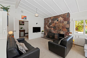 Feel welcomed into the fantastically sunny and spacious open plan living environment with its raked ceilings and angled windows. A solid stone wall is a feature and incorporates a fireplace for the cooler months plus there is a heat-pump for the summer air-conditioning. An easy flow to a private deck, landscaped gardens and patio is a great set up for entertaining and a safe area for the kids and pets to play. Electric gates have been installed for added convenience.
